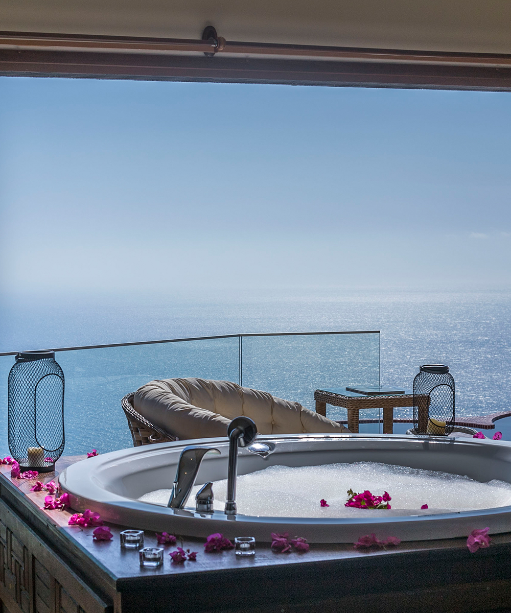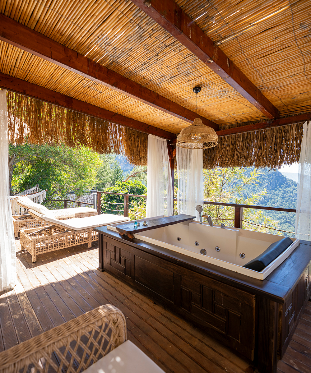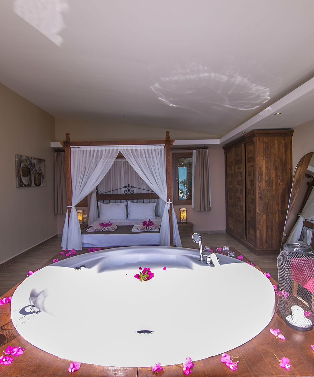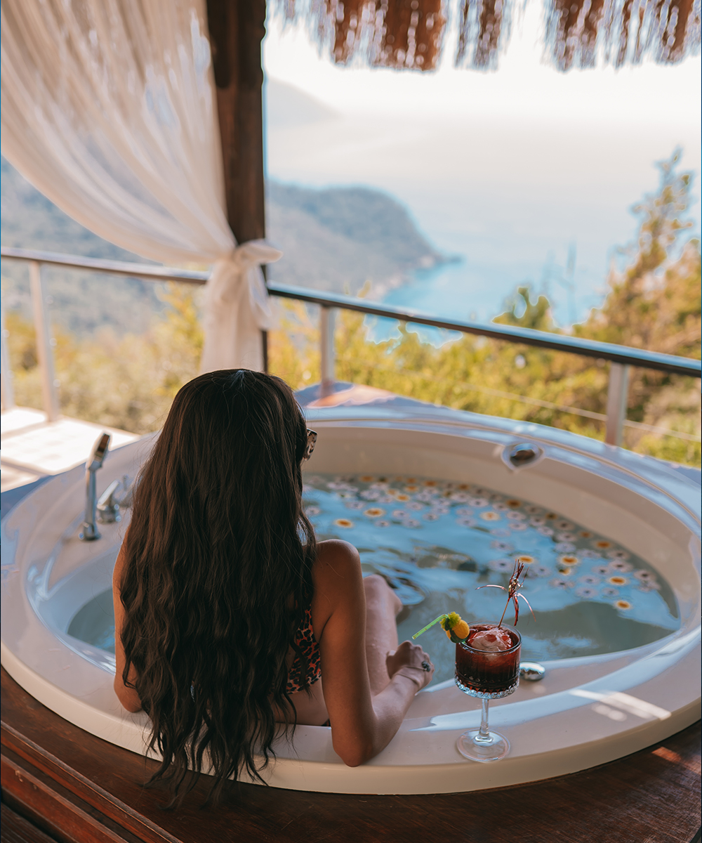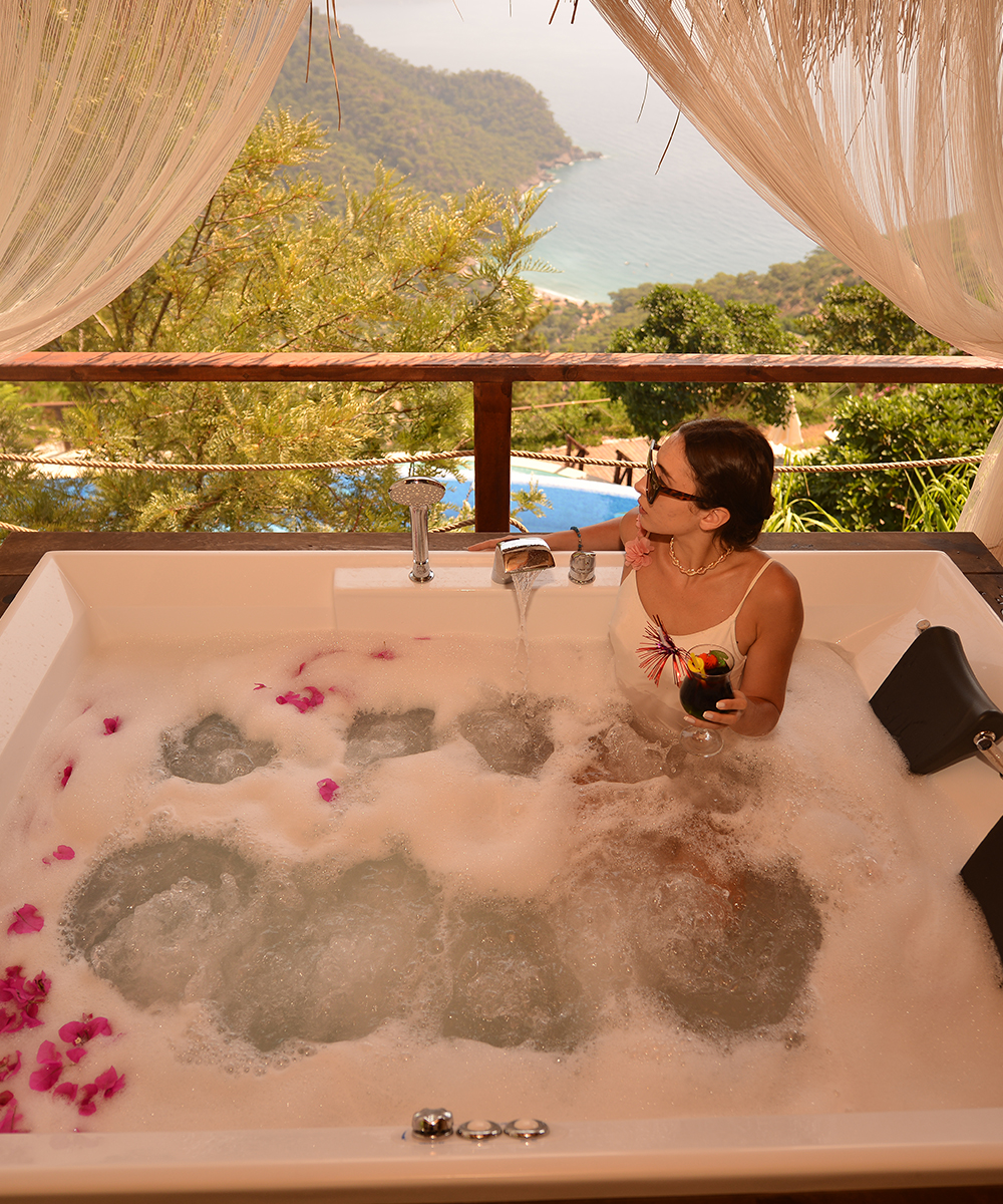 Odanızın mahremiyetinde, Akdeniz’in sonsuz maviliğine karşı ruhunuzu dinlendirin. Sıcak suyun rahatlatıcı etkisi ve büyüleyici manzara eşliğinde, kendinizi şımartacağınız en özel anlar burada sizi bekliyor.
