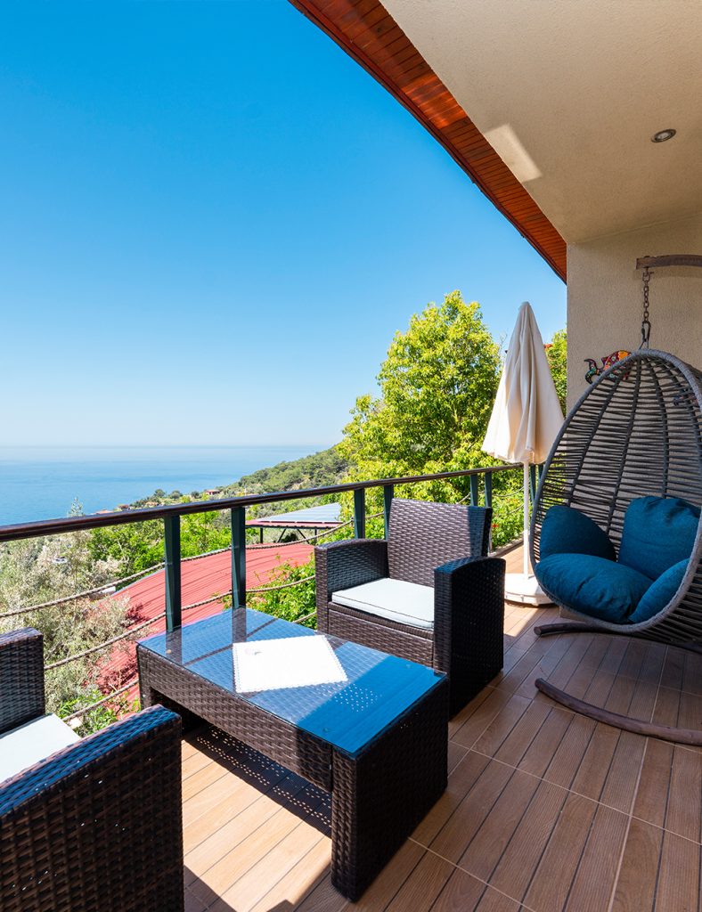 Huzur Salıncağı: Manzaraya karşı kitap okumak veya sadece hayallere dalmak için ikonik teras salıncağı.